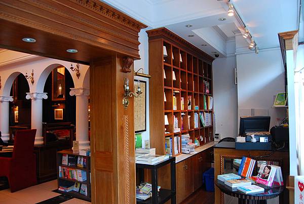 推開門進到餐廳後第一眼看到的就是這副景象,一堆很新的書,而這些書其實都是要賣的,當下還以為走到賣書的書局了